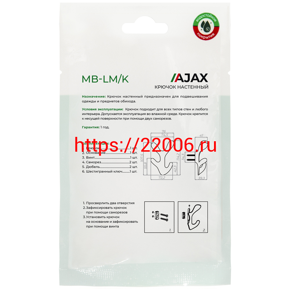 - Крючок Ajax (Аякс) настенный MB-LM/K-005 BL черный в Екатеринбурге недорого