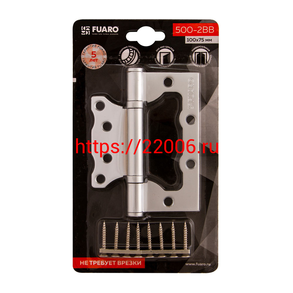 - Петля Fuaro (Фуаро) универсальная без врезки IN4500W-BL PC (500-2BB/BL 100x2,5) перламутровый хром БЛИСТЕР в Екатеринбурге недорого