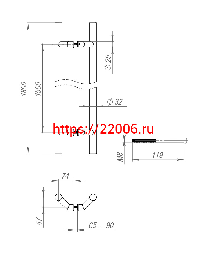 - Ручка-скоба Fuaro (Фуаро) PULL.PH32/1800.45 INOX 304 в Екатеринбурге недорого
