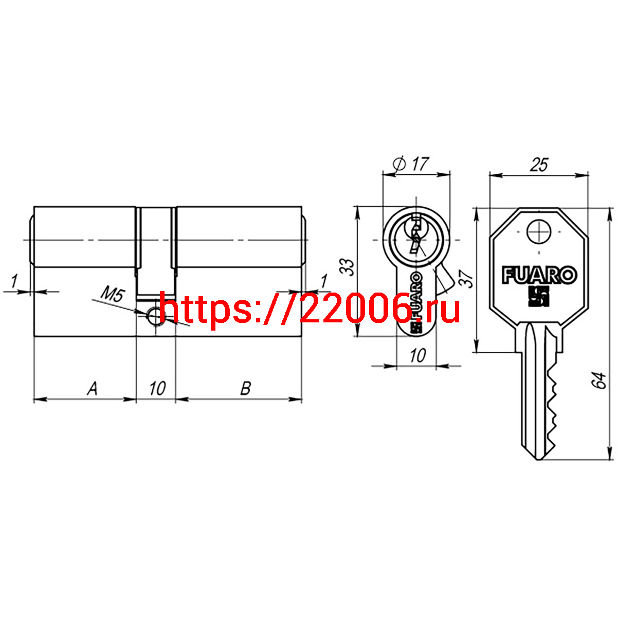 - Цилиндровый Fuaro (Фуаро) механизм (100 CA/80) 1000CAKey80(35+10+35) CP хром 5Key в Екатеринбурге недорого