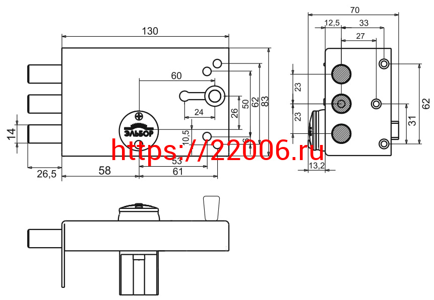 - Замок Elbor (Эльбор) накладной Лазурит 1.02.61.МА никель, сув., 2 риг., задвижка-затвор, медный антик /39328/ в Екатеринбурге недорого