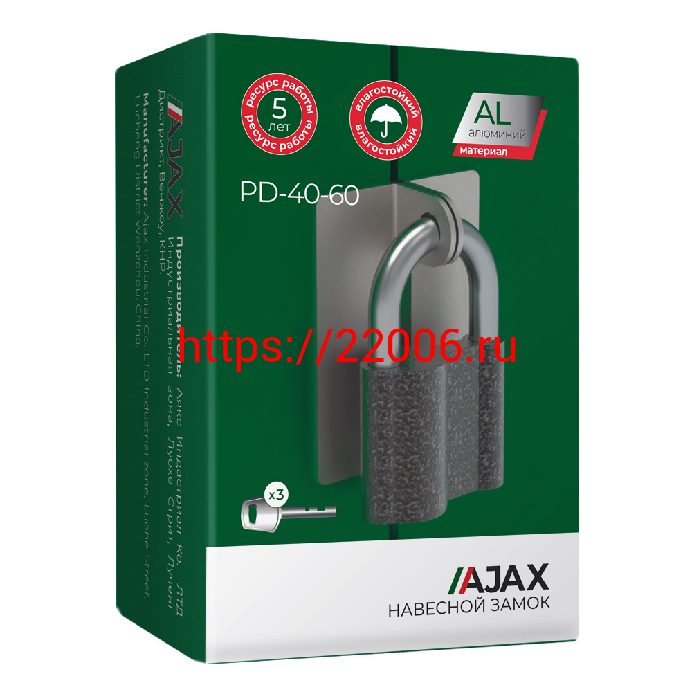 - Замок Ajax (Аякс) навесной PD-4060 (PD-40-60) 3 fin key /коробка в Екатеринбурге недорого