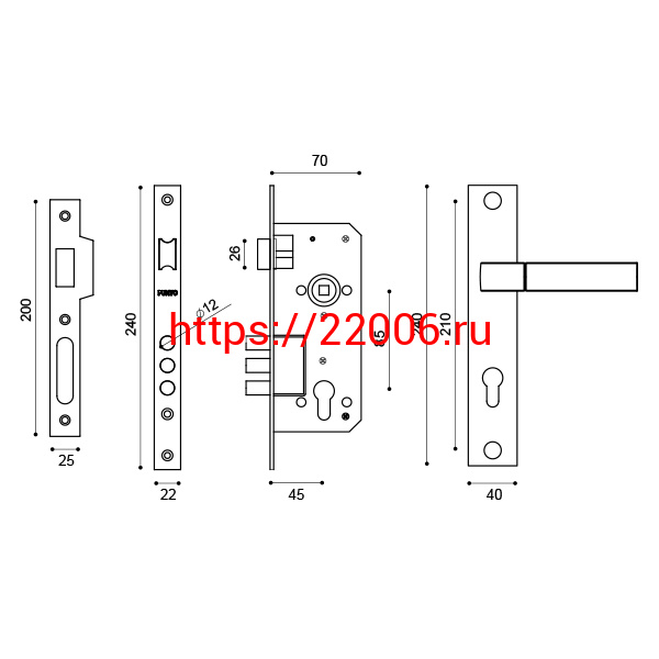 - Врезные электромеханические замки