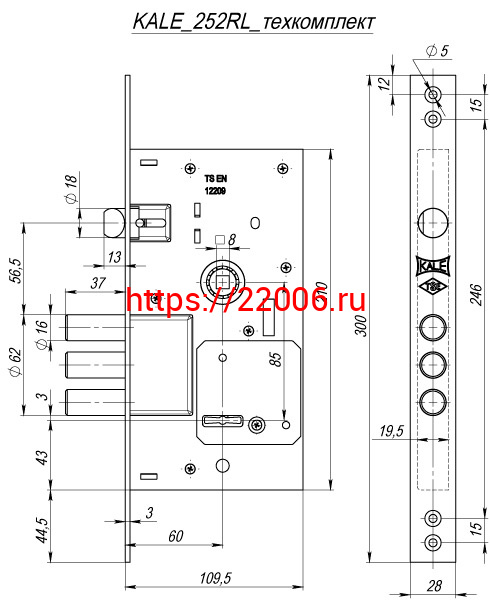 - Замок Kale kilit (Кале килит) врезной сувальдный с защёлкой 252/RL (тех. комплектация), 4 кл. в Екатеринбурге недорого