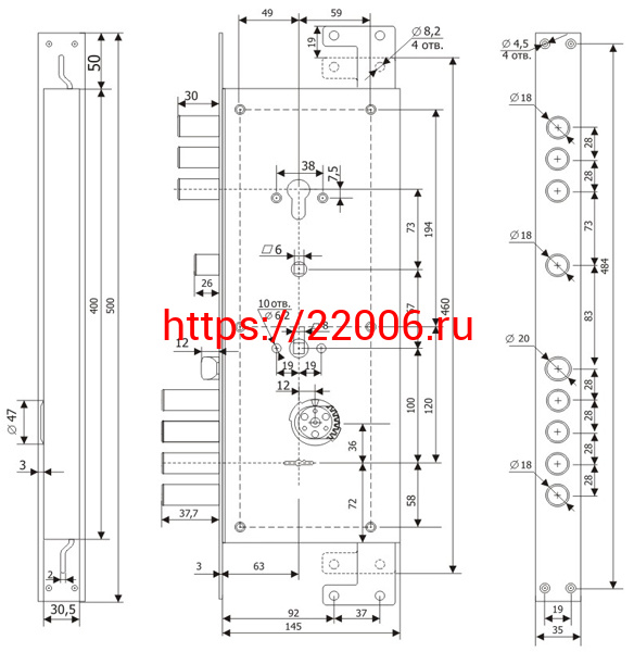- Замок Guardian (Гардиан) врезной двухсистемный ЗВ 25.14 Т (прав) с тягами (без накл), 5+1 кл (длин. кл. 54мм) /123:454/ в Екатеринбурге недорого