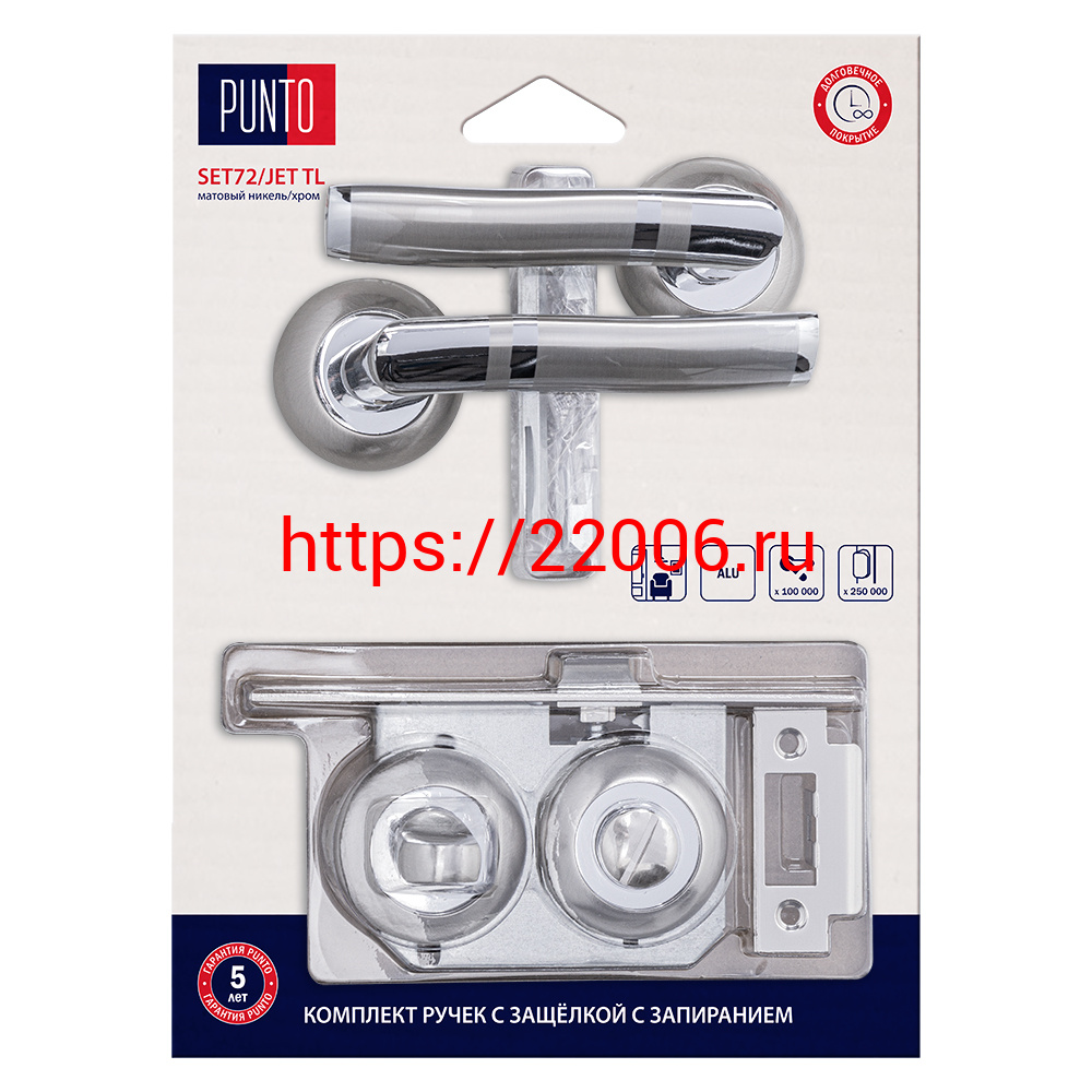 - Комплект ручек Punto (Пунто) с защелкой c запиранием LM/A SET72R.TL54.JET/HD SN/CP-3 матовый никель/хром в Екатеринбурге недорого
