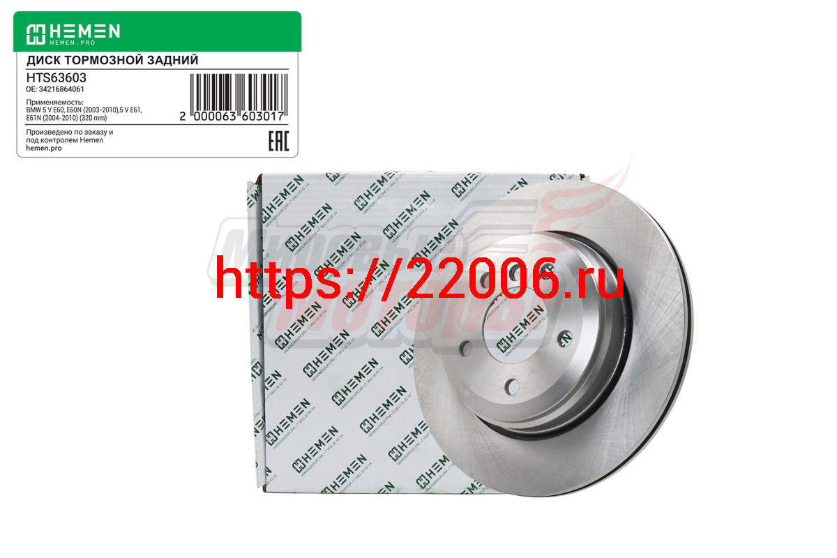 - Диск тормозной задний BMW 5,6 E60,61,63,64 04-, диам. 320 (HTS63603) в Екатеринбурге недорого