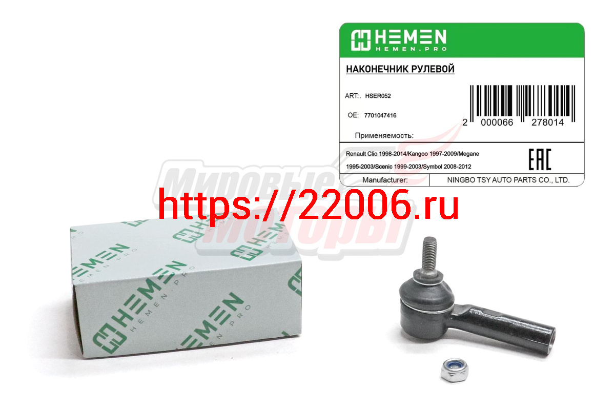 - Наконечник рулевой правый Renault Clio 98-,Kangoo 97-,Megane 95-,Scenic 99-,Symbol 08- (HSER052) в Екатеринбурге недорого
