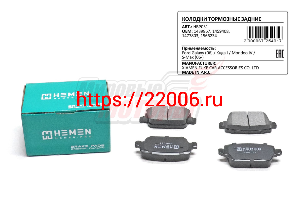 - Колодки торм. зад. диск. Ford Galaxy 06-, Kuga I, Mondeo IV, S-Max 06- (HBP031) в Екатеринбурге недорого