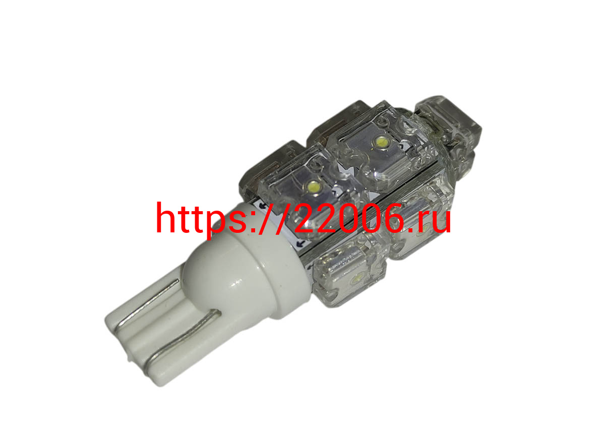 - Лампа светодиодная (LED) 12V T10 (W2,1х9,5d) 9LED W5W белая в Екатеринбурге недорого
