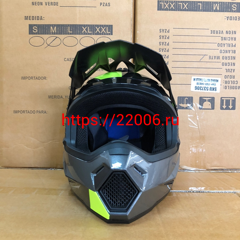- Шлем кроссовый COBRA JK801, №3 серый - лайм, размеры M в Екатеринбурге недорого