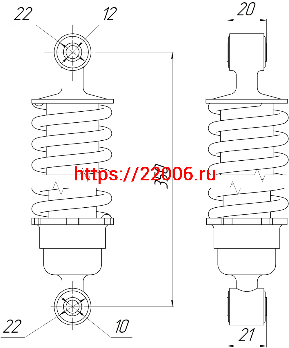- Амортизатор Alpha зад. хром (L-350,D1-22,d1-12, Н1-20, D2-22,d2-10, Н2-21) ДОРОГОЙ (длинный стакан) в Екатеринбурге недорого