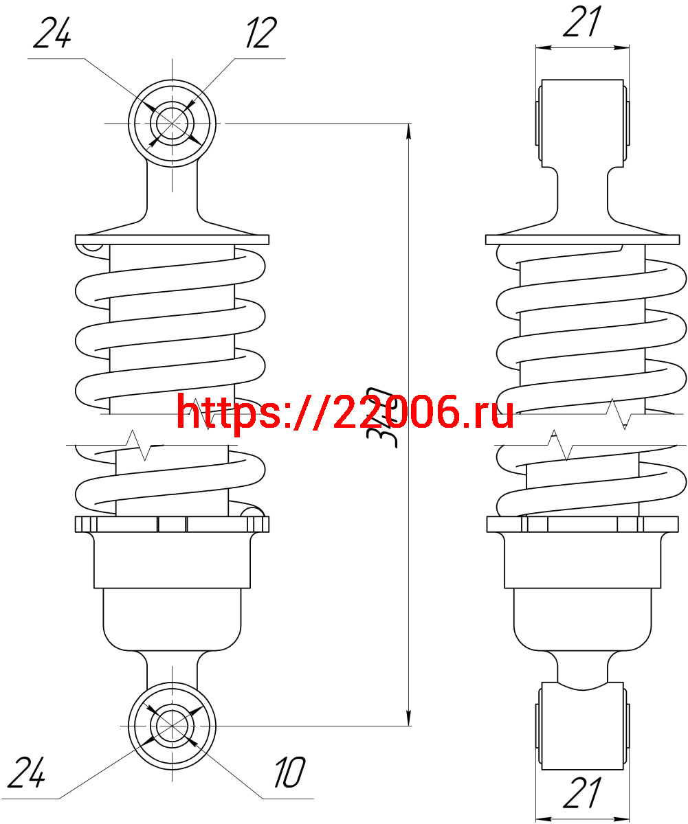 - Амортизатор зад. L-340, D1-24, d1-12, Н1-21, 2-24, d2-10, Н2-21 Alpha ANDES в Екатеринбурге недорого